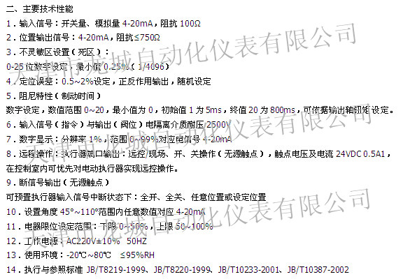 輸入信號:4-20mA,DC;開關(guān)量